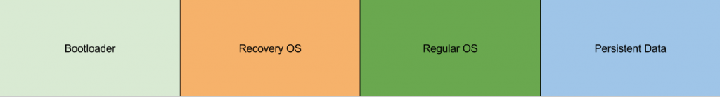 We no longer need to reserve space to put an update image as it can be streamed straight to the storage medium (the inactive part), but we do take up more space still as we must keep two copies of the “Regular OS”.
